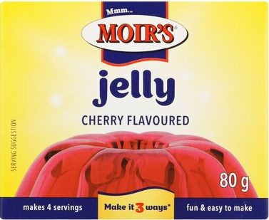 160g Moir’s Cherry, Strawberry or Blackcurrant Jelly (2 pkts)